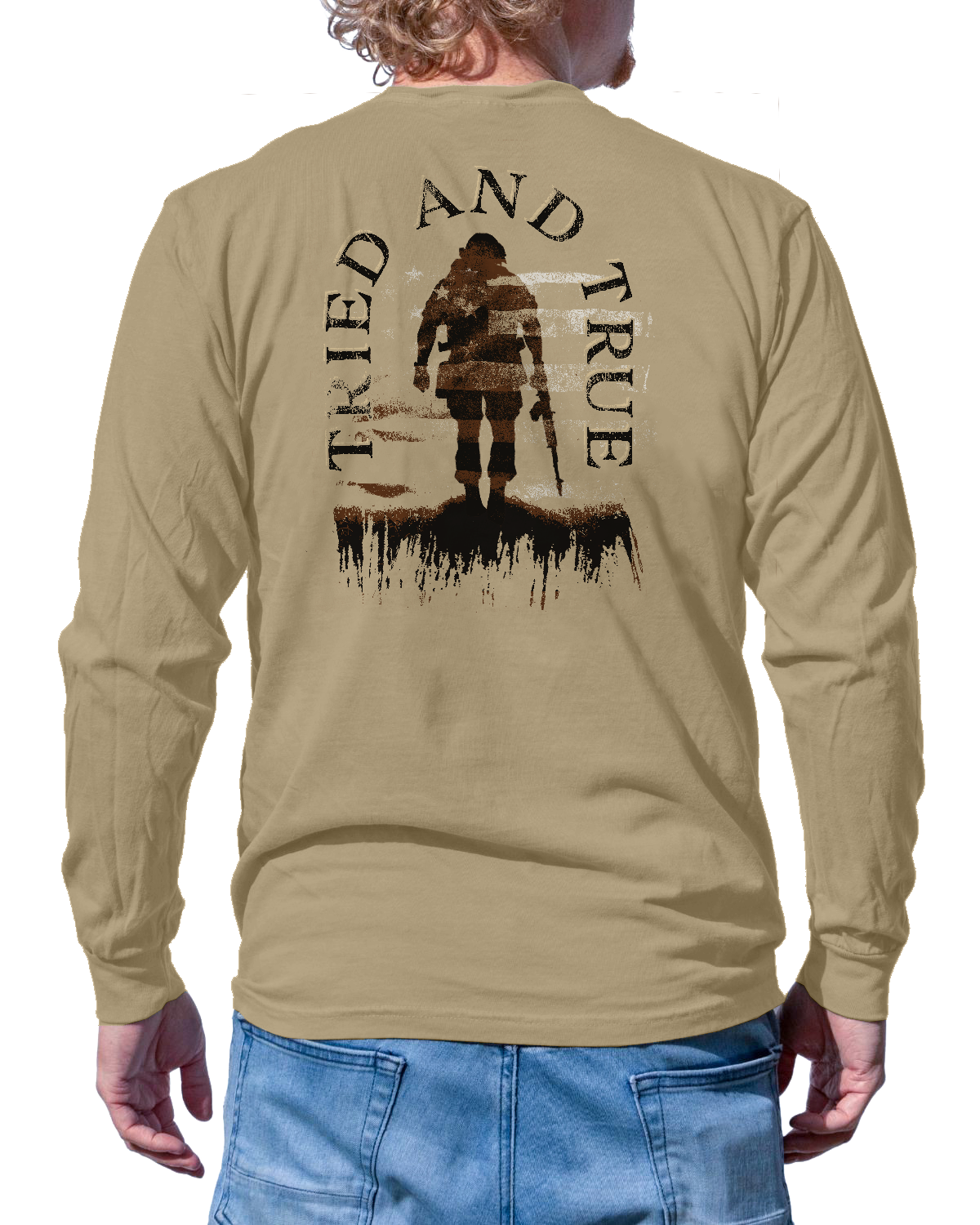 There's a lot to love in Tried & True's Walk Tall Soldier tee. This design features the silhouette of a soldier walking in front of an American flag. It's not just a great Patriotic t-shirt, it's a reminder of the heroes who gave us all that we have today. The body of the tee is crafted from super-soft, ring-spun cotton that's durable enough for all the use that this shirt is going to get.